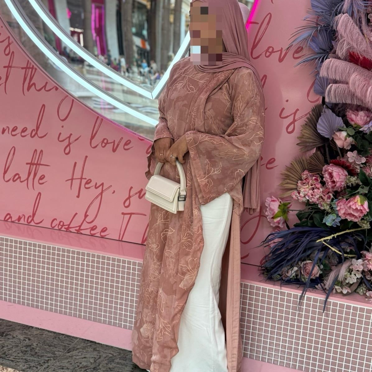 ESBAH - Modest Long Top with Gold Brooch - Pink Floral Design Fashion Wear