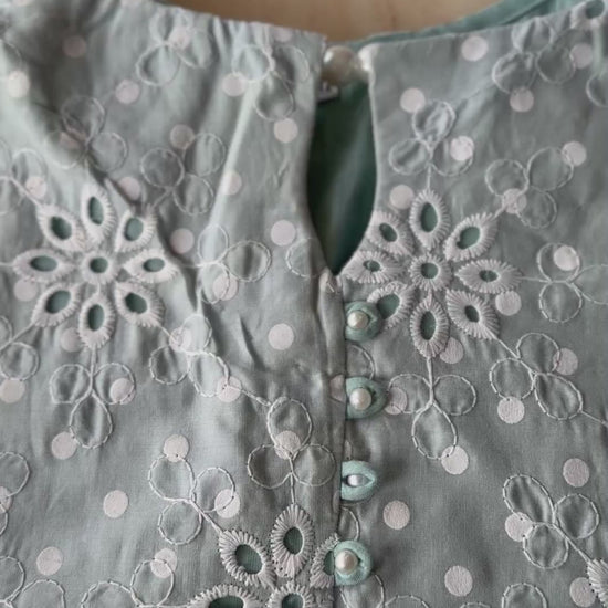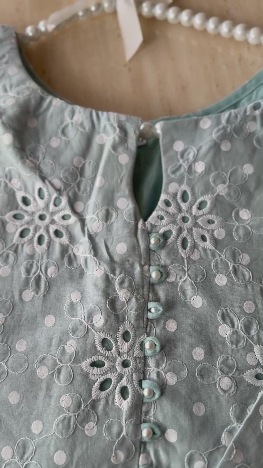 There’s something so refreshing about the cord set in soft mint green. It feels like a breath of fresh air. The delicate floral embroidery on the shirt adds a subtle touch of elegance. This outfit makes you feel graceful without even trying. Perfect for when you want to look put-together but stay comfortable.